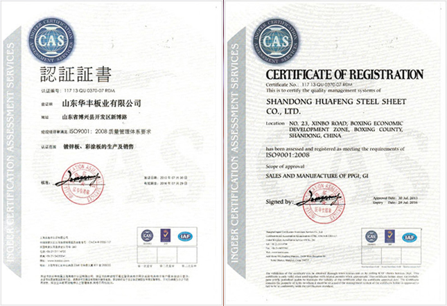 The company has passed the ISO9001 national quality system certification, and established Huafeng's industrial chain integration competition strategy only with professional brand suppliers. The substrate materials rely on Shanxi Jianlong Industry, Hebei Xinjin, Delong Iron and Steel, Anshan Iron and Steel, Handan Iron and Steel and other large enterprises. The paint relies on professional suppliers such as Aksu, Weishi, and Nippon to focus on quality improvement and customer satisfaction, and then seek better benefits and greater scale.